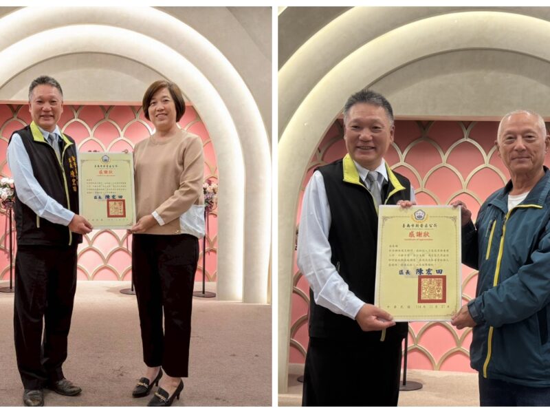 現場播放新營區災後復原紀錄影片,透過畫面重現颱風來襲的震撼與破壞,也令人深刻感受各界資源挹注與援助的溫暖,見證社區從災後中逐步復原的歷程。與會貴賓包括李宗翰議員及立法委員賴惠員、林俊憲、陳亭妃,市議員蔡育輝、趙昆原、王宣貿、沈家鳳等多位地方民代服務團隊,以及新營區各里里長、協力單位代表與善心人士出席,共同見證新營災後復原重建的成果與溫情。新營區長陳宏田親自向各協力單位及夥伴致贈感謝狀,表達誠摯謝意。