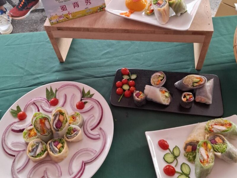 一、於9時至12時辦理「虱目魚創意料理及農產品展示」,由臺南市農會與本市12家農會及家政製作虱目魚創意料理及農產品展示,展示料理包括:麒麟狀元慶有餘、百花彩釀牛奶魚、桑椹醬香虱目魚排、虱來運轉月餅酥、珍珠魚寶、思暮故鄉ㄟ魚仔、從頭吃到尾、私沐點心、山海流光.破布吟、福氣有魚、虱背秀、綠漾鮮蔬魚香碗、3Q思慕の餅、book虱益等共14道虱目魚主題料理,現場民眾絡繹不絕,吸引眾多關注。