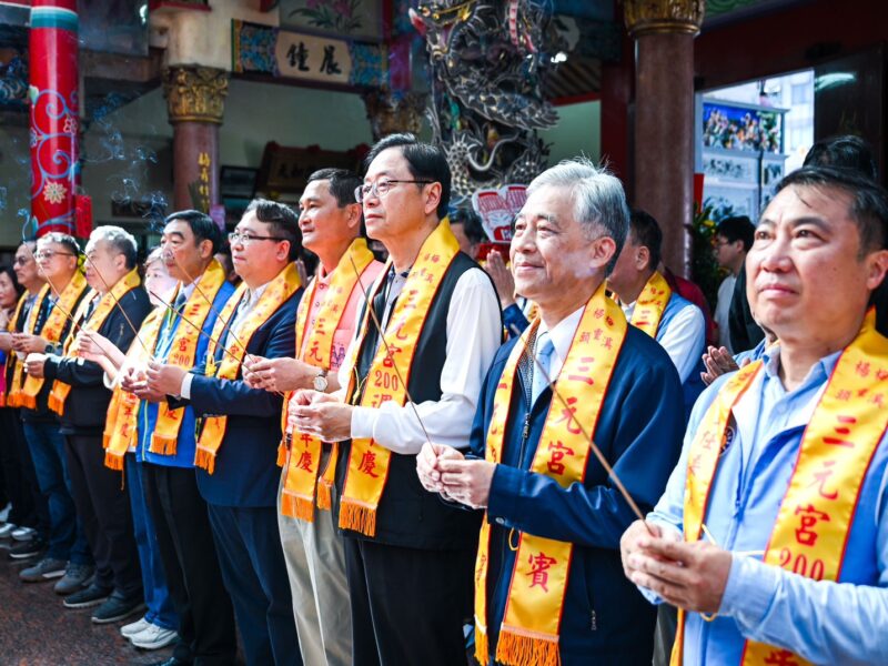 今日包括總統府副秘書長何志偉、立法委員涂權吉、市議員李家興、鄭淑方、客家委員會副主委范佐銘、法務部次長黃世杰、市府客家局長范姜泰基、民政局長劉思遠、消防局長龔永信、農業局長陳冠義、楊梅區長施永恭、中壢區長李日強、平鎮區長蕭巧如、頭重溪三元宮主委吳錦鴻、興元宮總幹事莊訓庚等均一同出席。(圖:客家事務局提供)