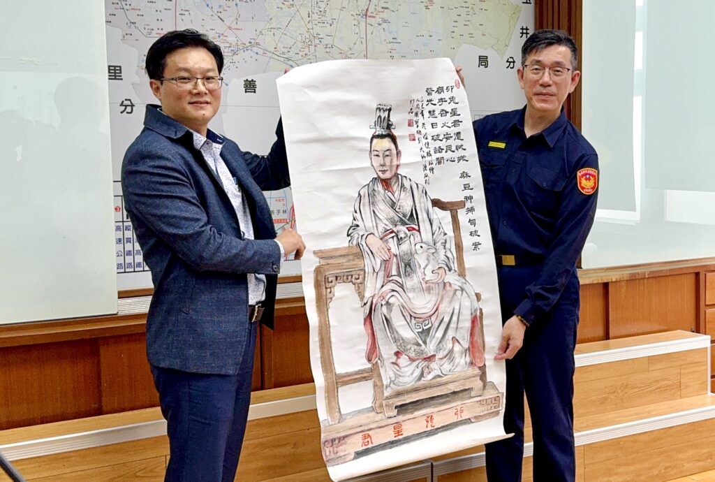 為肯定員警鍥而不捨的辦案精神,台南市政府副秘書長徐健麟今(3)日前往麻豆分局加油打氣,並致贈親手繪製的「卯兔星君」水墨畫與加菜金,代表市府感謝警方迅速破案的努力。