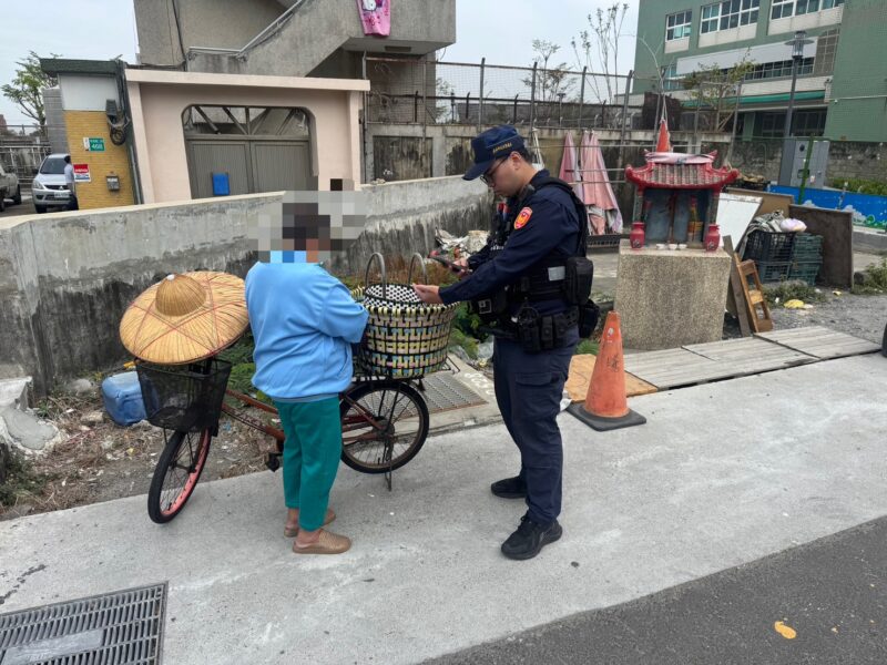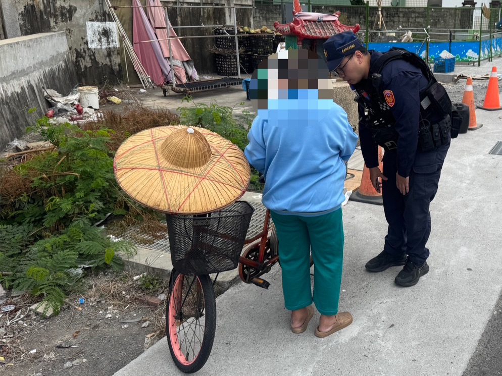 經了解,高姓老嫗平日獨居,當日買菜返家途中不適而跌倒。她擔心造成警消困擾,又掛心放在路旁的腳踏車,因此一度堅持不願就醫。員警耐心安撫後,以警車協助載送其返家休養,另名員警則騎乘其腳踏車同行護送,讓她能安心返回住處。