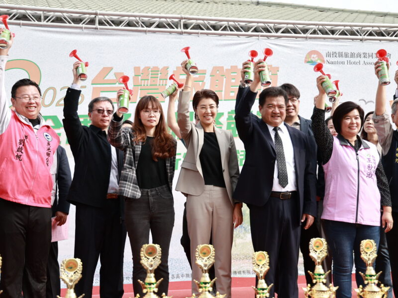 許縣長與南投縣旅館公會理事長李吉田、交通部觀光署旅宿組科長柯乃文、日月潭國家風景區管理處長柯建興、縣議員王秋淑、魚池鄉長劉啟帆等貴賓,共同啟動鳴笛,為活動開幕。