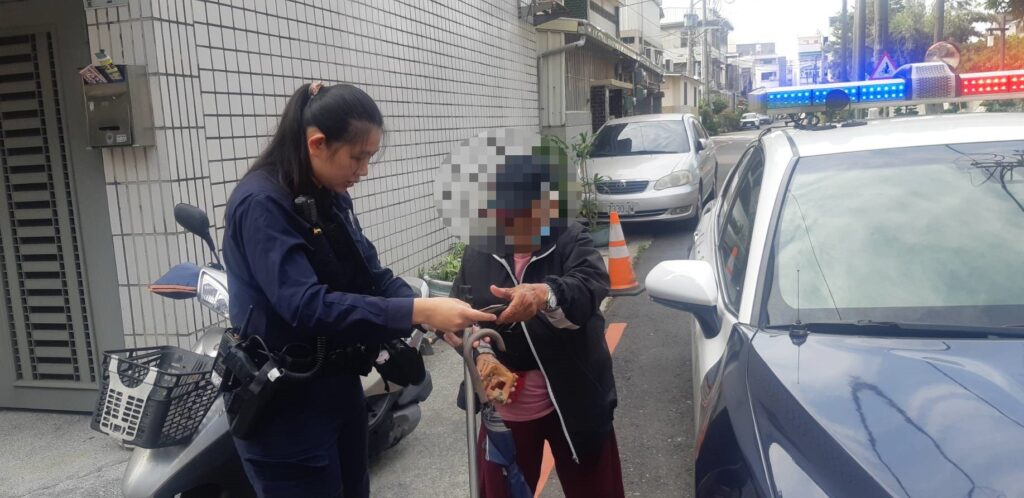 員警先安撫李婦不安情緒,檢視身體有無受傷,確定情緒稍微穩定後,關懷詢問住址資料與家屬聯繫資訊,但李婦因記憶混亂,無法清楚表達,員警以警政系統交叉比對資料,耐心比對可用線索,經過積極努力查詢,終於成功查證住家位置,員警隨後攙扶李婦坐上巡邏車平安護送返家,當抵達住處後,員警亦協助聯繫到李婦的家屬前來了解狀況,家屬聽聞後十分感謝警方即時處置,表示,李婦一人獨居,家人最怕的就是這種走失情況,真的很感謝警方發現得早,不然後果真難想像。